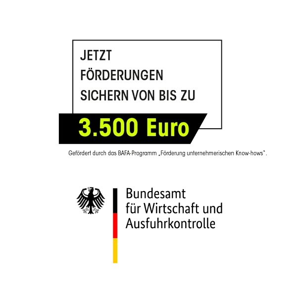 JETZT NEU: Wir können gemeinsam erörtern, ob der Staat deine neue Kundengewinnung mit bis zu 3.500 Euro fördern wird. Als zertifizierte Unternehmensberaterin kann ich die dafür erforderlichen Dokumente und Vorgänge einreichen.